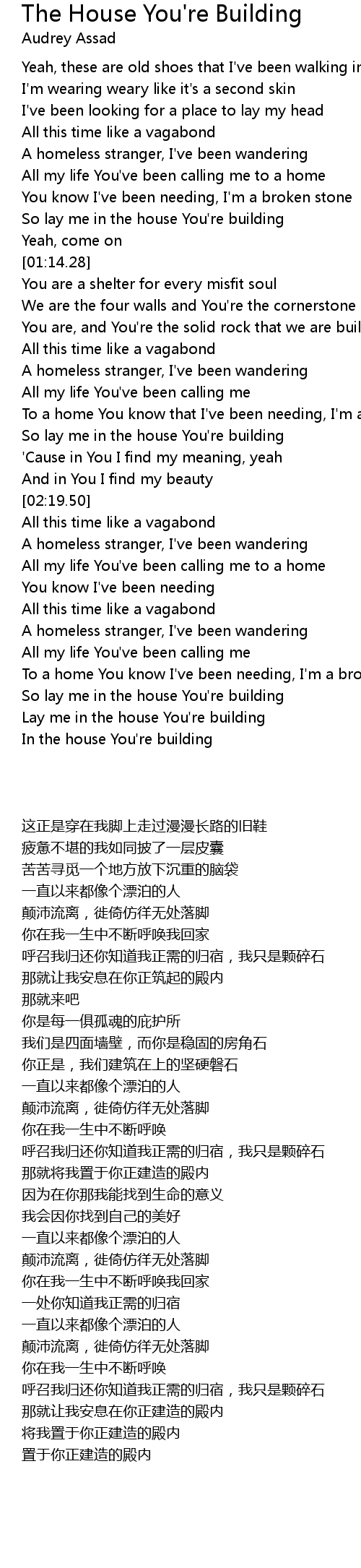 So lay me in the house You're building |