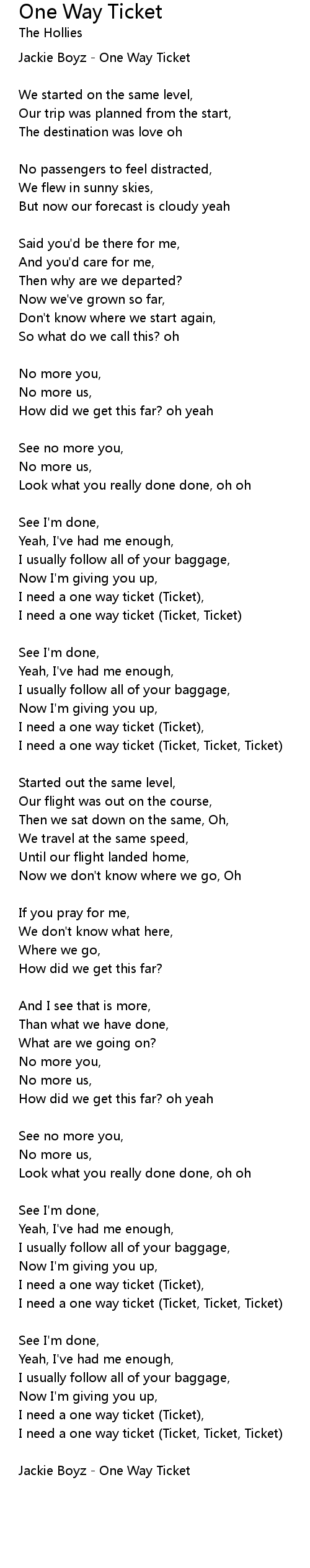 I need a one way ticket (Ticket, Ticket, Ticket)