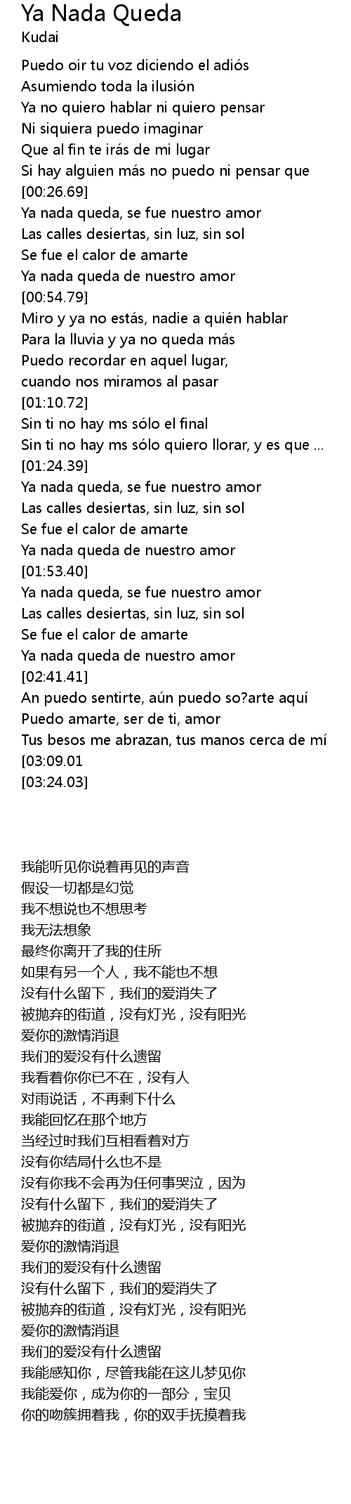 | [01:45.40] | Ya nada queda de nuestro amor |