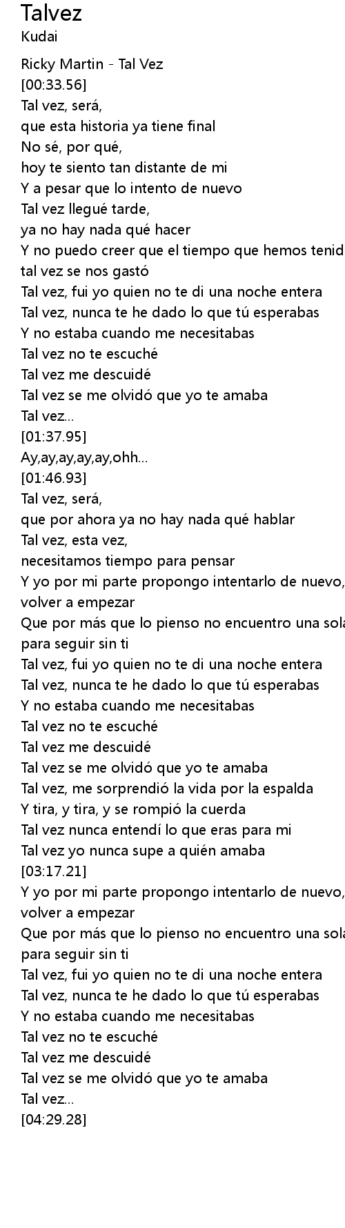| [00:00.00] | Ricky Martin - Tal Vez |