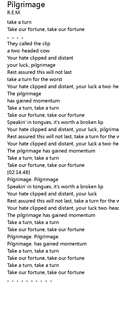 | [02:21.94] | Pilgrimage. Pilgrimage |