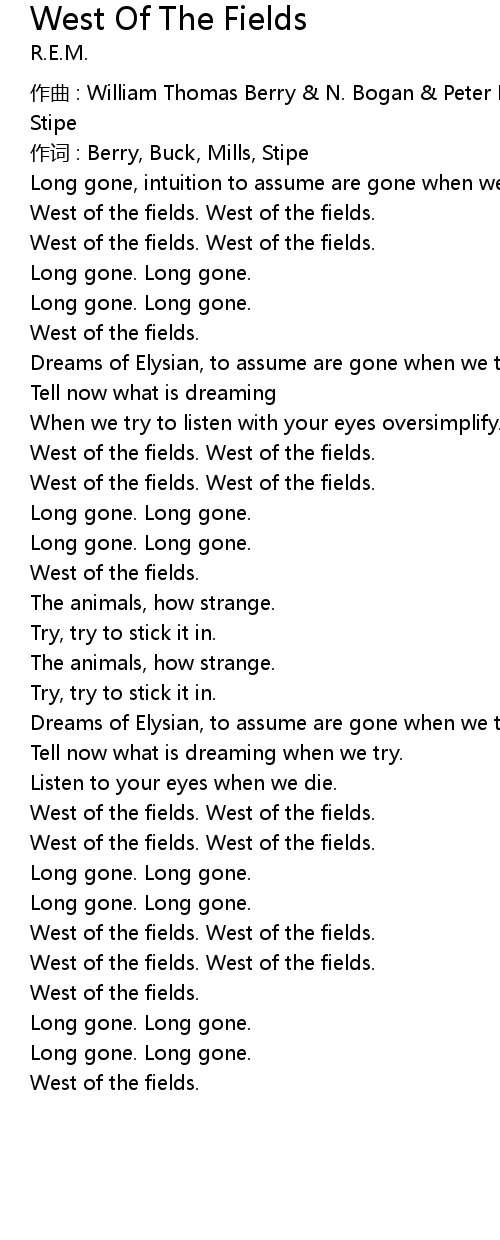 | zuò qǔ : William Thomas Berry N. Bogan Peter Buck Mike Mills Michael Stipe | |