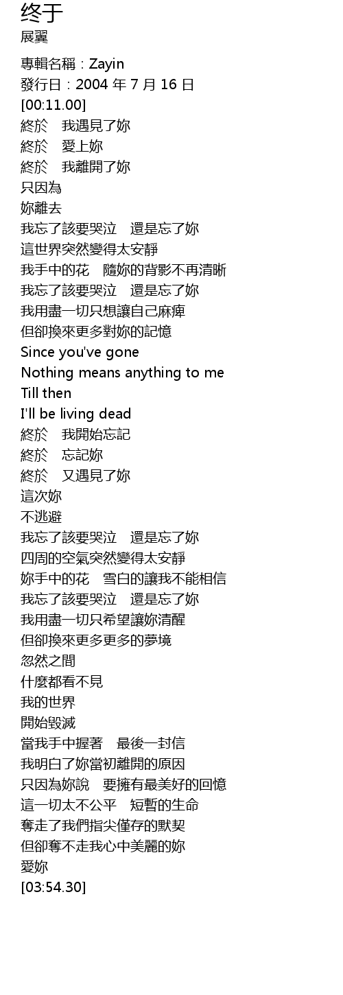| [00:39.08] | 終於 我離開了妳 |