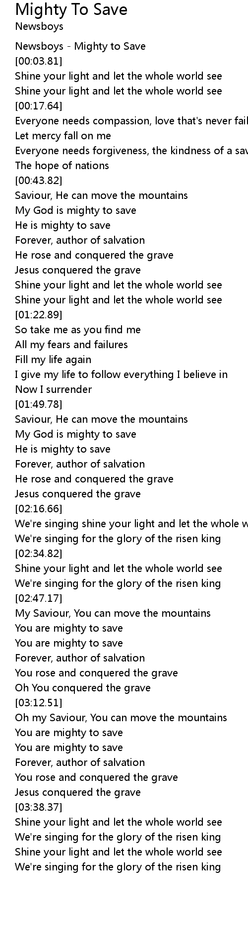 Newsboys - Mighty to Save |