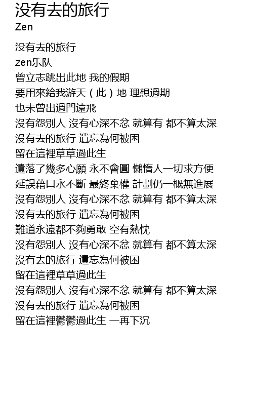 | [01:37.00] | méi yǒu qù de lǚ xíng yí wàng wèi hé bèi kùn |