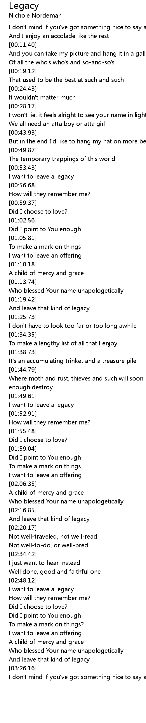 Legacy Lyrics