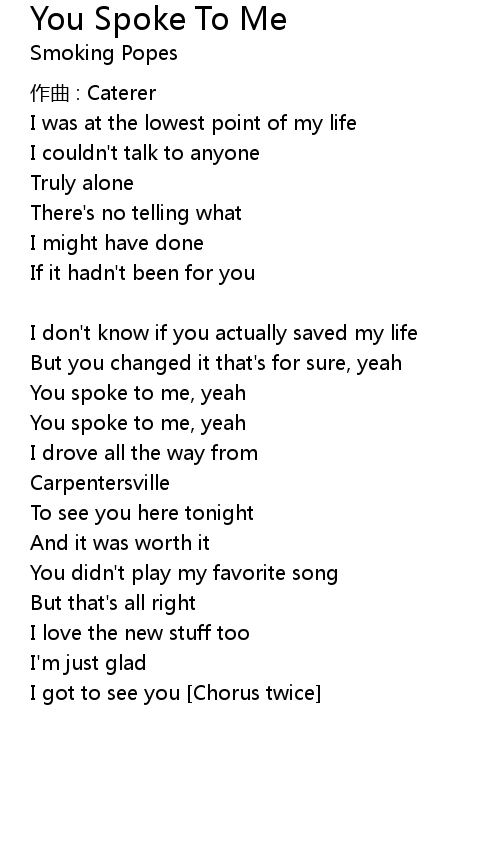 | You spoke to me, yeah | |