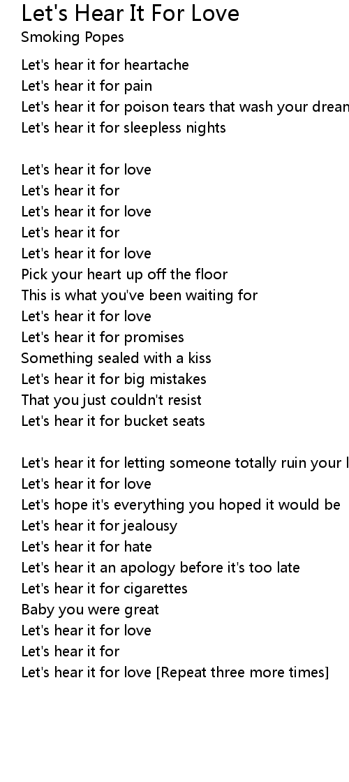 Let's hear it for love [Repeat three more times] |