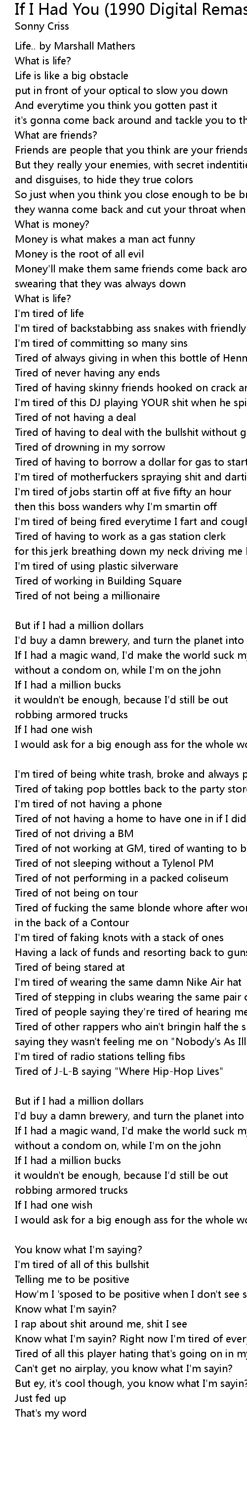 saying they wasn't feeling me on "Nobody's As Ill As Me" |