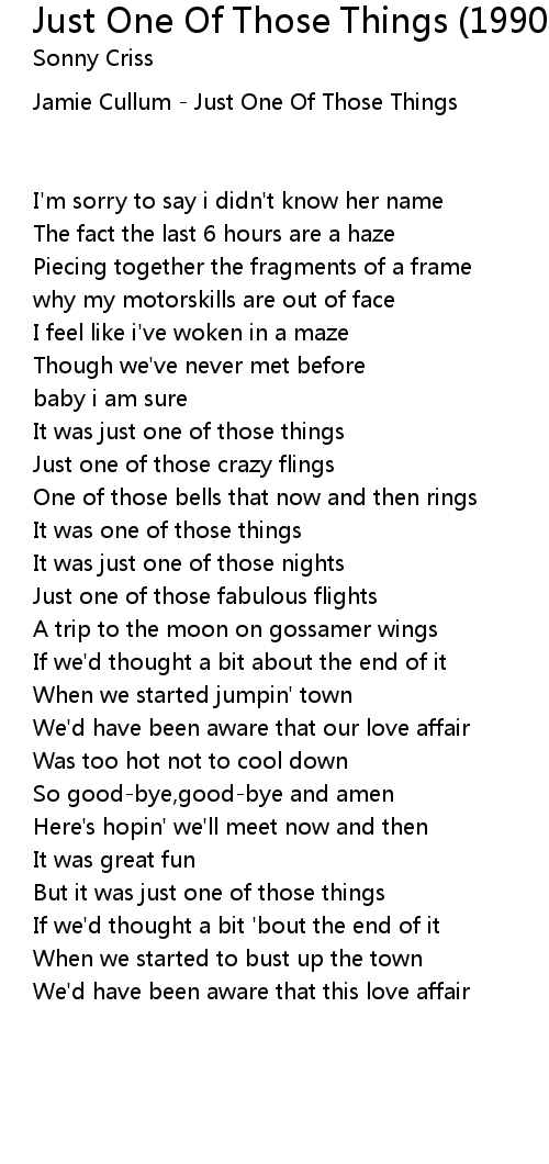 Just One Of Those Things (1990 Digital Remaster) Lyrics
