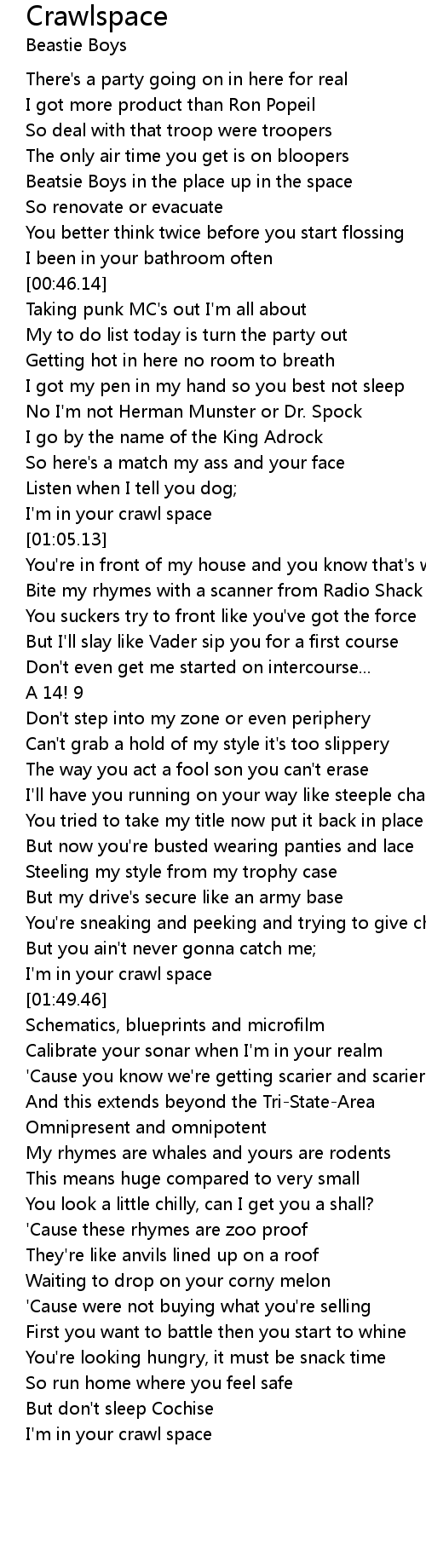I'm in your crawl space |