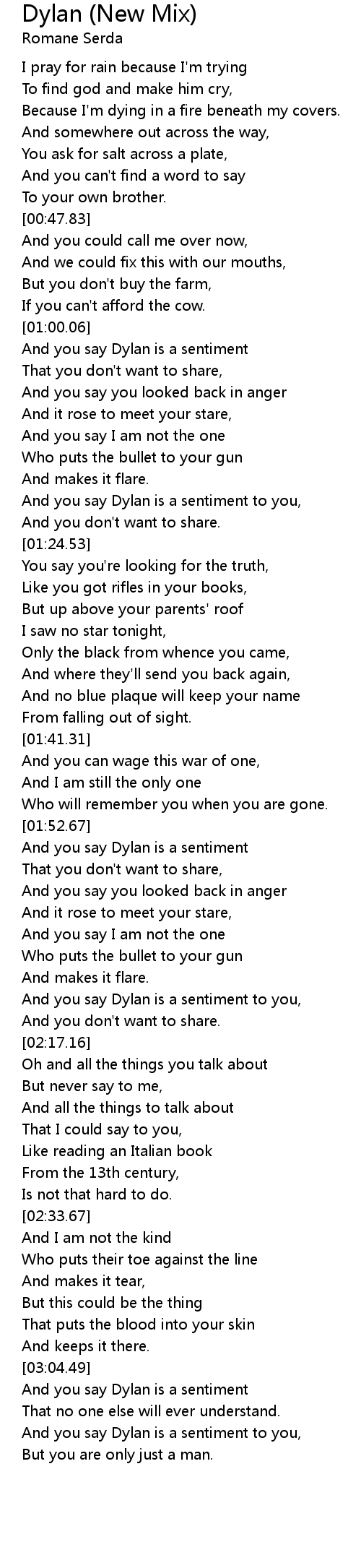 And you say Dylan is a sentiment to you, |
