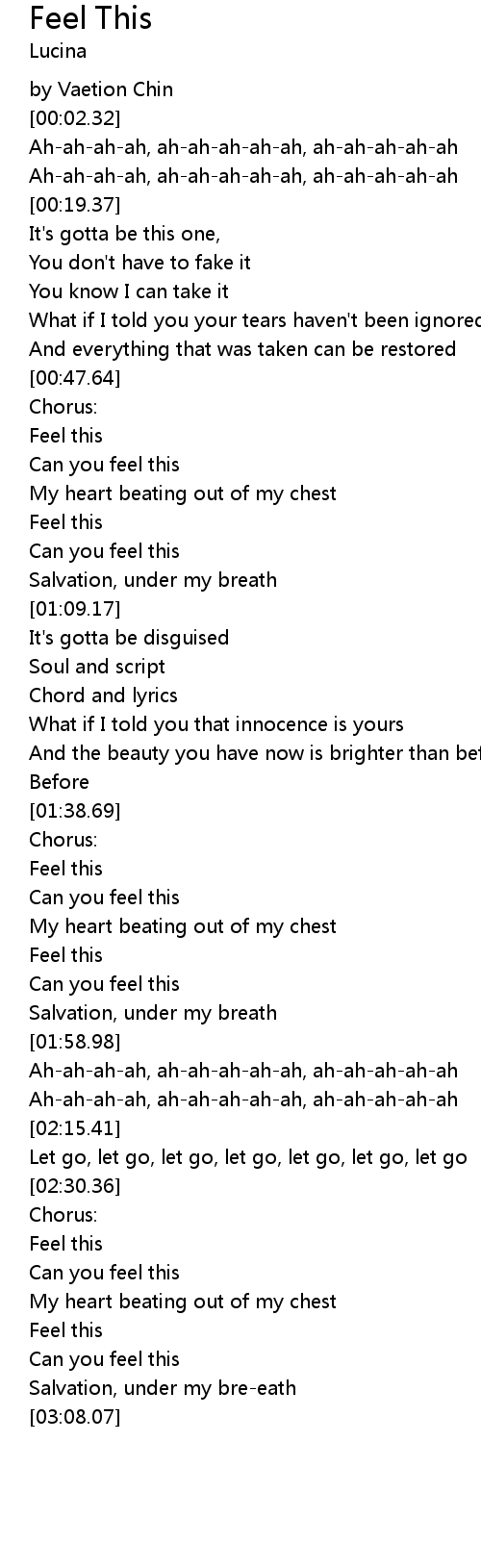 | [02:45.59] | Can you feel this |