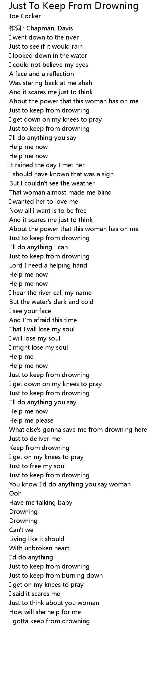 | Song | Just To Keep From Drowning |