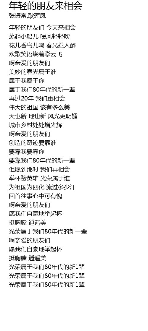 | [00:09.93] | nián qīng de péng yǒu men jīn tiān lái xiāng huì |