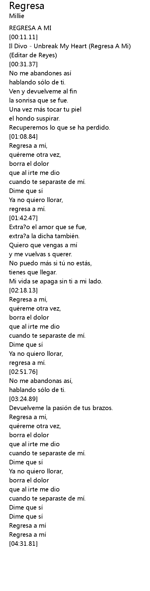 | [00:16.14] | Il Divo - Unbreak My Heart (Regresa A Mi) |