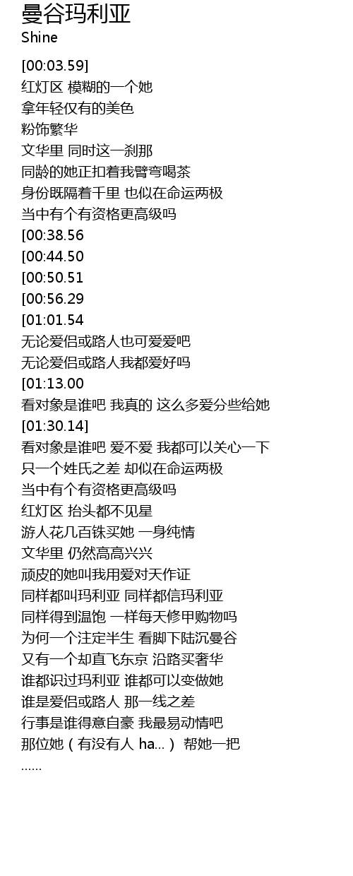 | [03:07.78] | 为何一个注定半生 看脚下陆沉曼谷 |