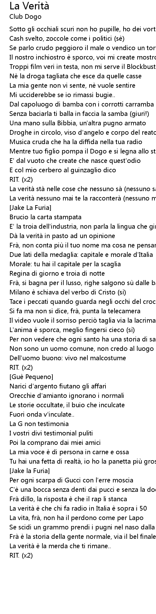| La verità stà nelle cose che nessuno sà (nessuno sà, frà.. nessuno sà) | |