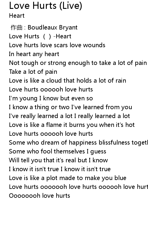 | [03:46.215] | Love hurts ooooooh love hurts oooooh love hurts |
