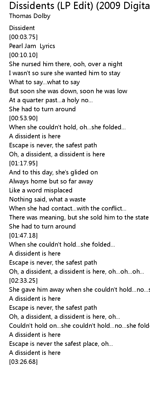 Dissidents (LP Edit) (2009 Digital Remaster) Lyrics
