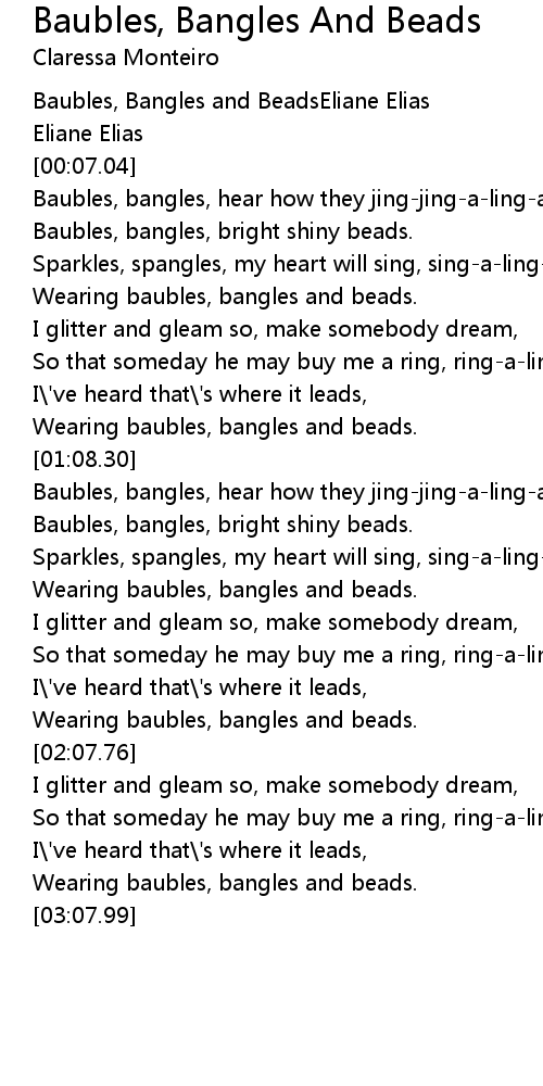 Baubles, bangles, hear how they jing-jing-a-ling-a |