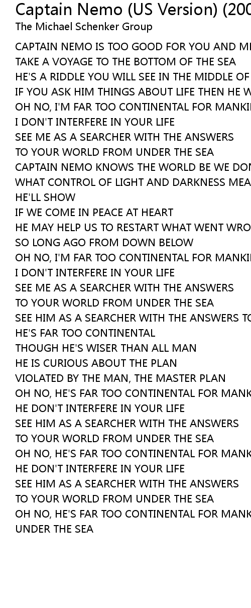 Captain Nemo (US Version) (2009 Digital Remaster) Lyrics