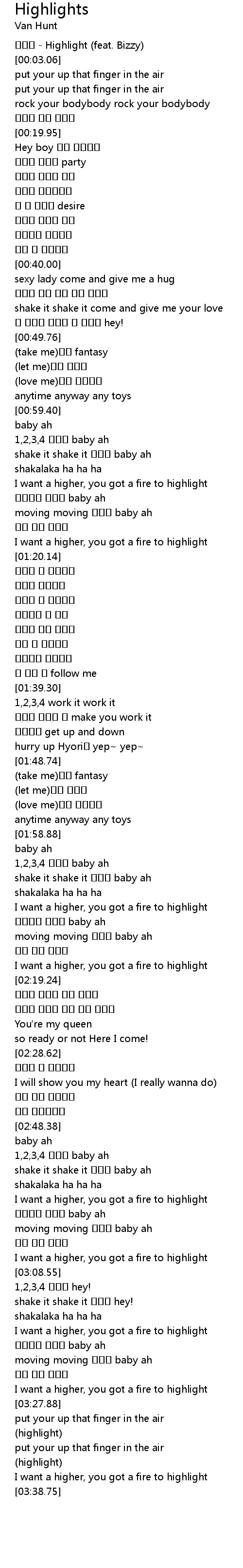 | [00:01.36] | 이효리 - Highlight (feat. Bizzy) |
