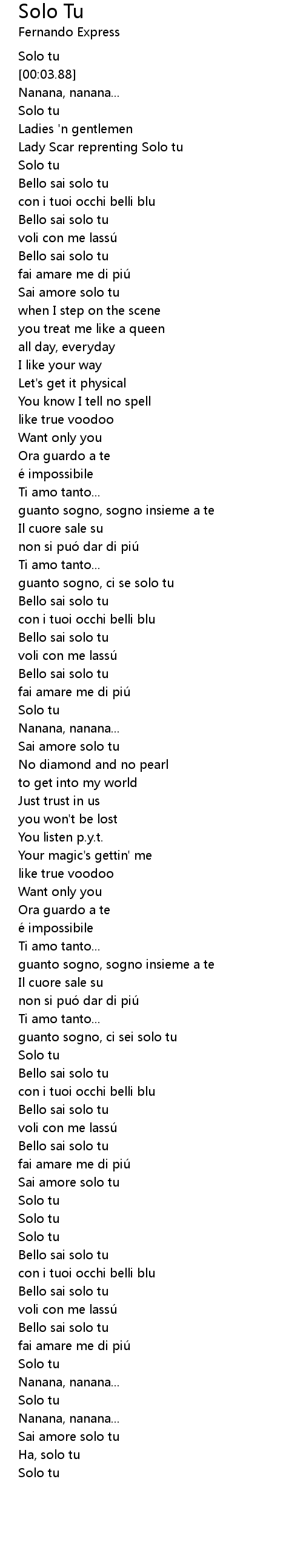 | [02:32.67] | Sai amore solo tu |