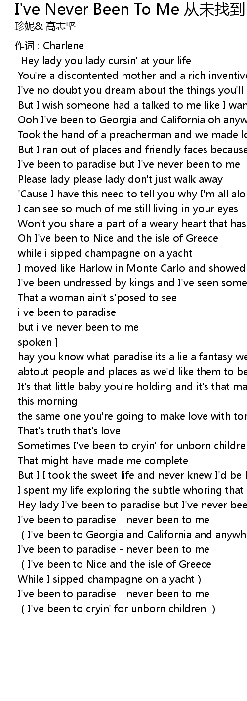 | I' ve been to paradise never been to me | |