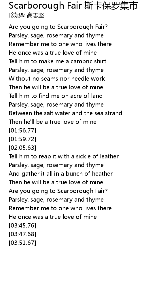 | [03:11.45] | Are you going to Scarborough Fair? |