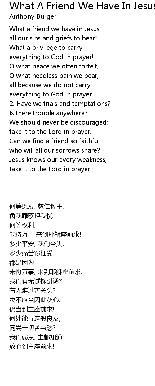 What a friend we have in Jesus, |