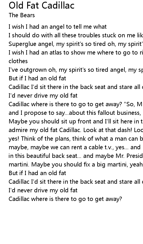 Cadillac where is there to go to get away? "So, Mr. President, what should you and I propose to say...about this fallout business, raining all over our parade. Maybe you should sit up front and I'll sit here in the back and we can both admire my old fat Cadillac. Look at that dash! Look at that amazing upholstery, yes! Think of the plans, think of what a man can build with his hands... and maybe, maybe we can rent a cable t.v., yes... and plug it right in, right here in this beautiful back seat... and maybe Mr. President, you could fix a big martini. Maybe you should fix a big martini, yeah".