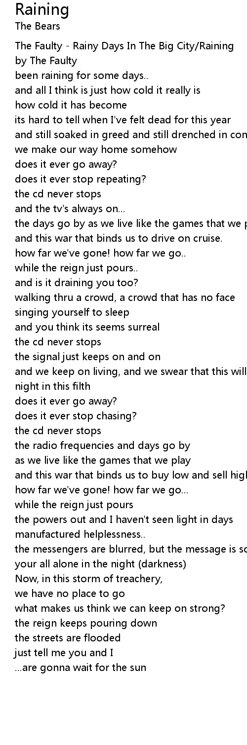 | [00:03.92] | The Faulty - Rainy Days In The Big City/Raining |