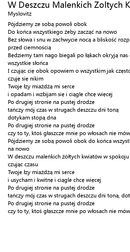 | [02:18.95] | W deszczu male kich ó tych kwiató w w spokoju przy sobie nie czuj c czasu |