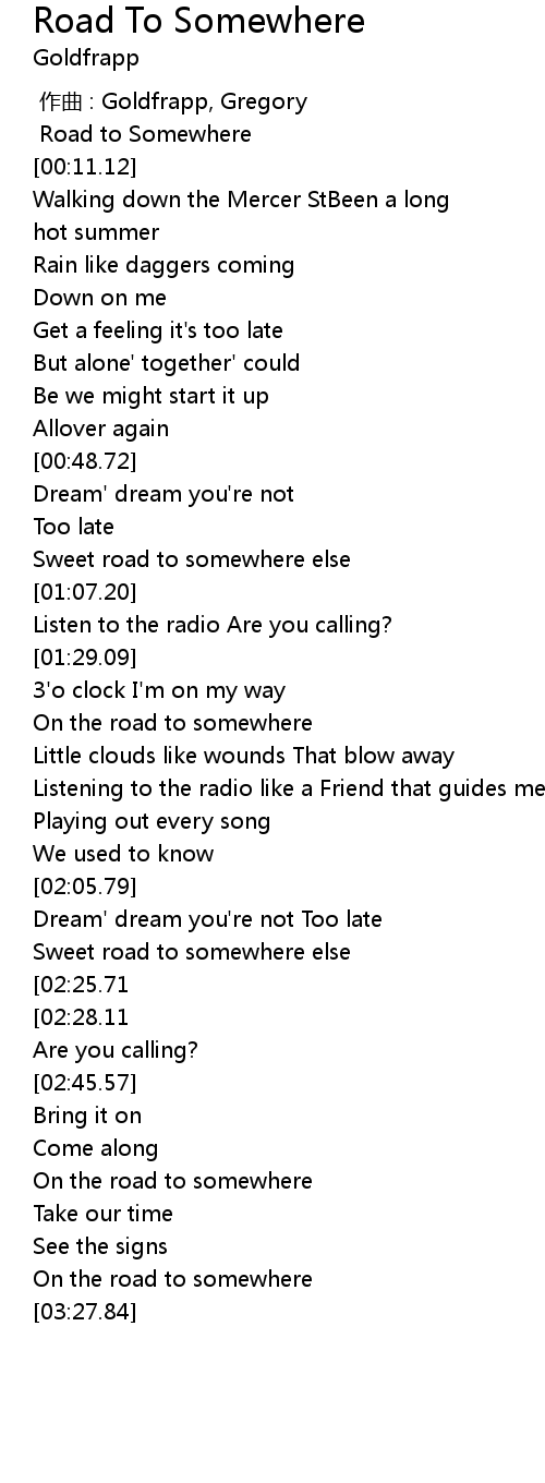 | [03:02.81] | On the road to somewhere |