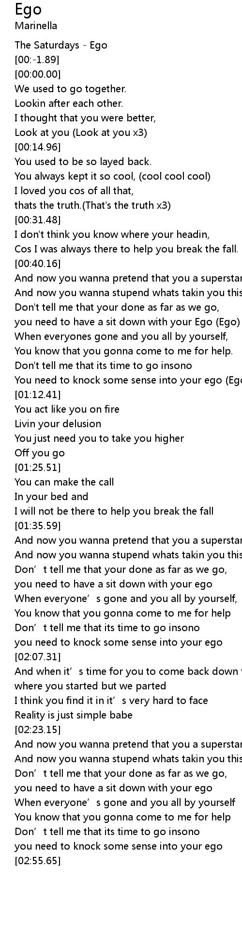 | [01:08.20] | You need to knock some sense into your ego Ego x4 |