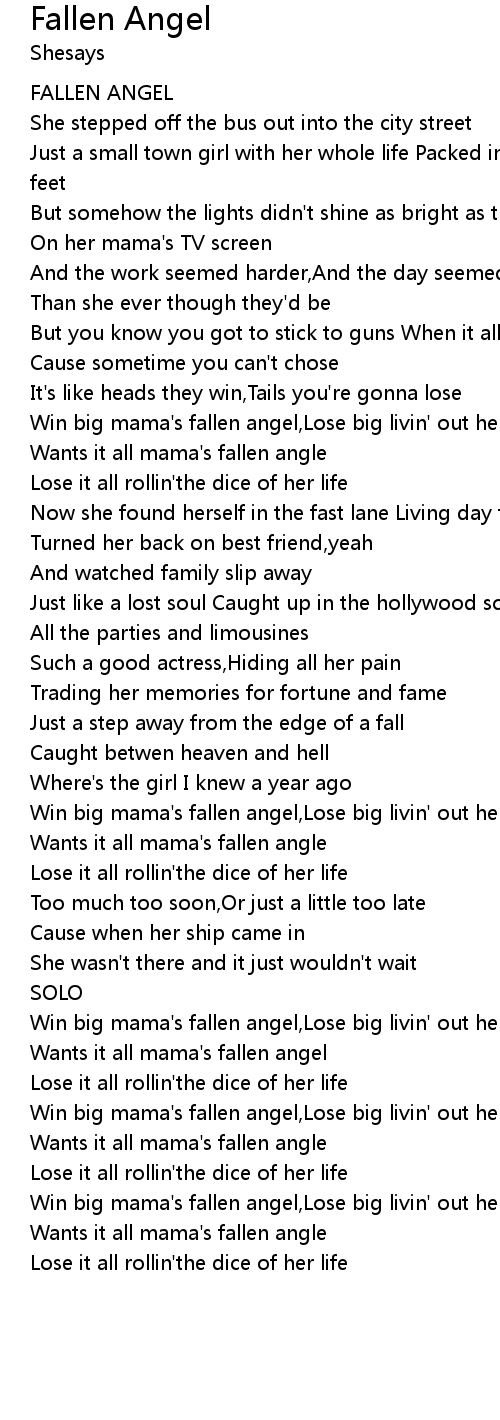 | [03:10.61] | Wants it all mama's fallen angel |