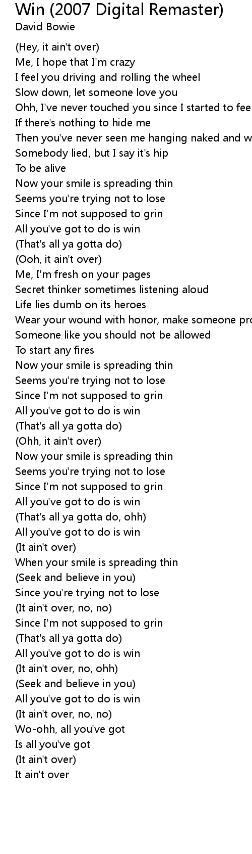 All you've got to do is win |