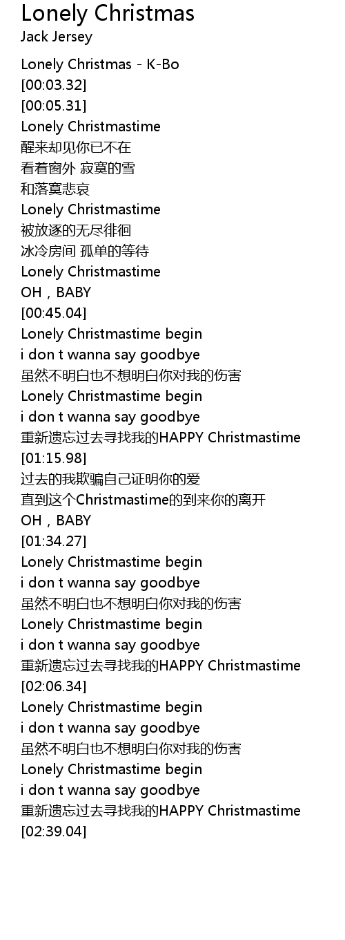 | [00:02.33] | Lonely Christmas - K-Bo |