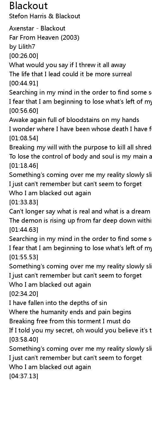 [04:19.57] Something's coming over me my reality slowly slipping away
