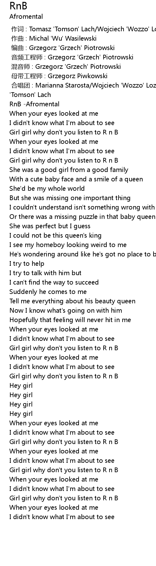 | [03:18.49] | Girl girl why don' t you listen to R n B |