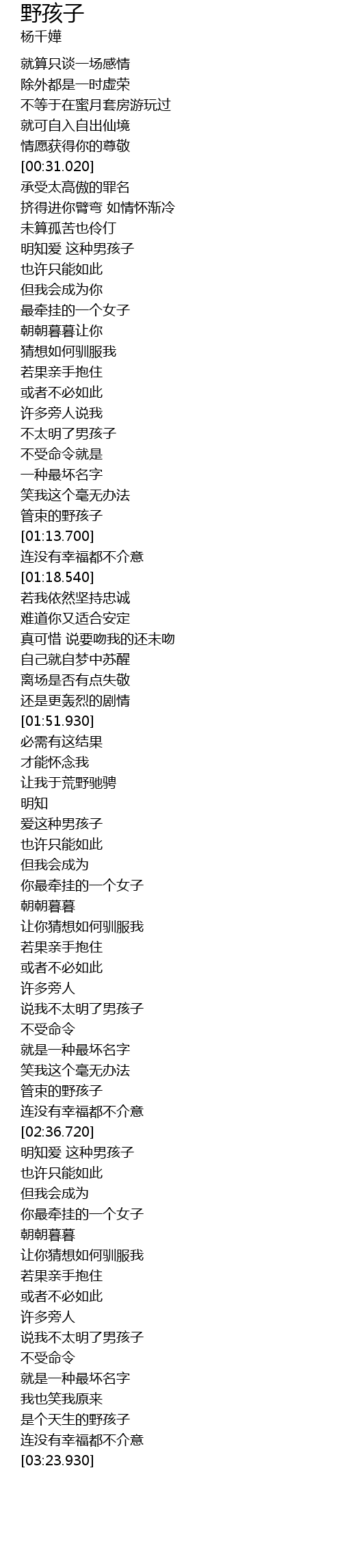 | [02:17.630] | shuō wǒ bù tài míng liǎo nán hái zi |