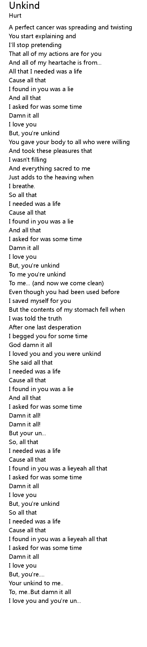 | Your unkind to me.. | |