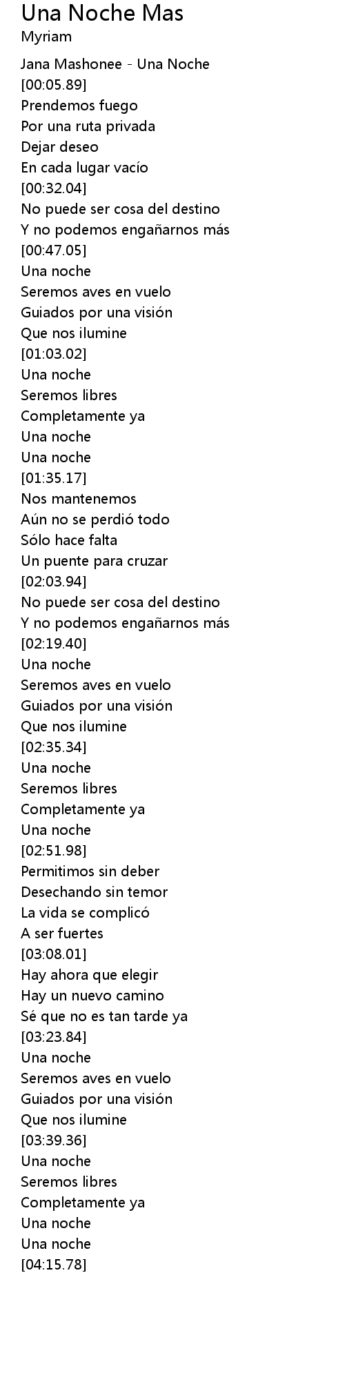 | [00:01.12] | Jana Mashonee - Una Noche |