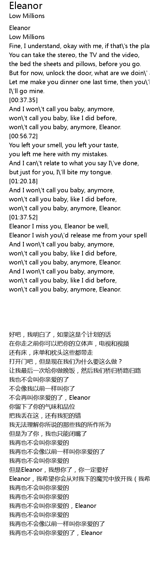 Eleanor I miss you, Eleanor be well, |