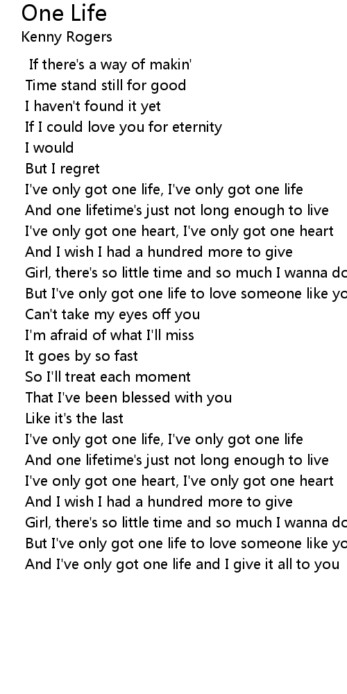 And one lifetime's just not long enough to live |