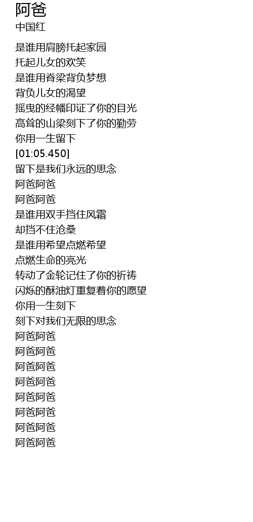 | [00:56.480] | 高耸的山梁刻下了你的勤劳 |