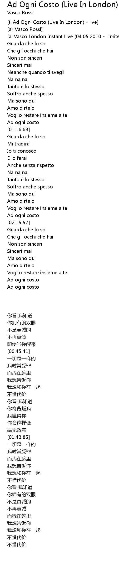 | [ti:Ad Ogni Costo (Live In London) - live] | |