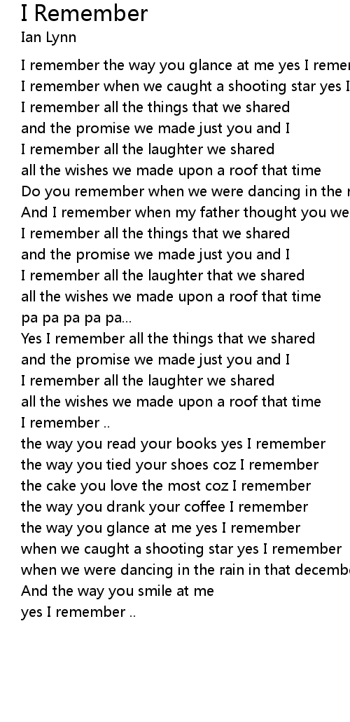 I remember .. |