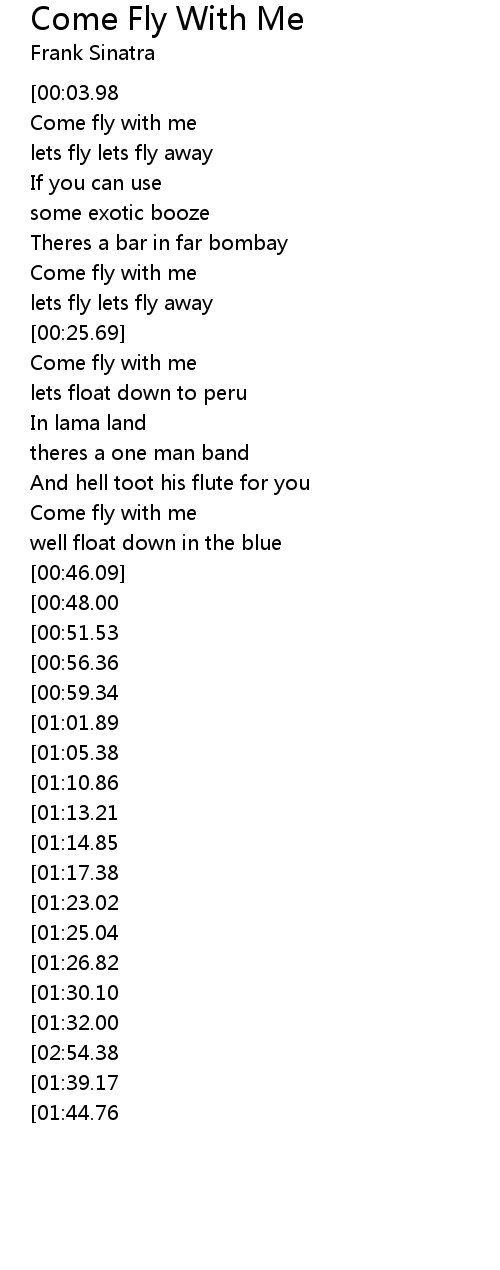 | [02:59.96][02:54.38][01:37.15] | Come fly with me |